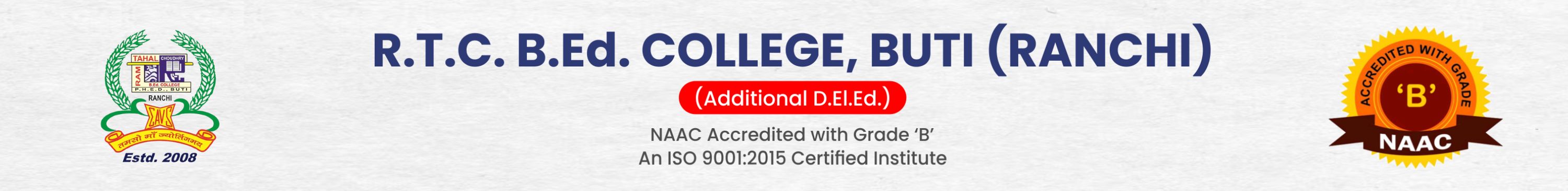 R.T.C. B.Ed. College is one of the pioneer teacher training institutions of Ranchi, Jharkhand. Founded in 2008, it has emerged as a centre of excellence for the development of innovative techniques and skills in teaching training. The college offers two different teacher training courses one at secondary (B.Ed.) and the other at primary (D.El.Ed.) level.